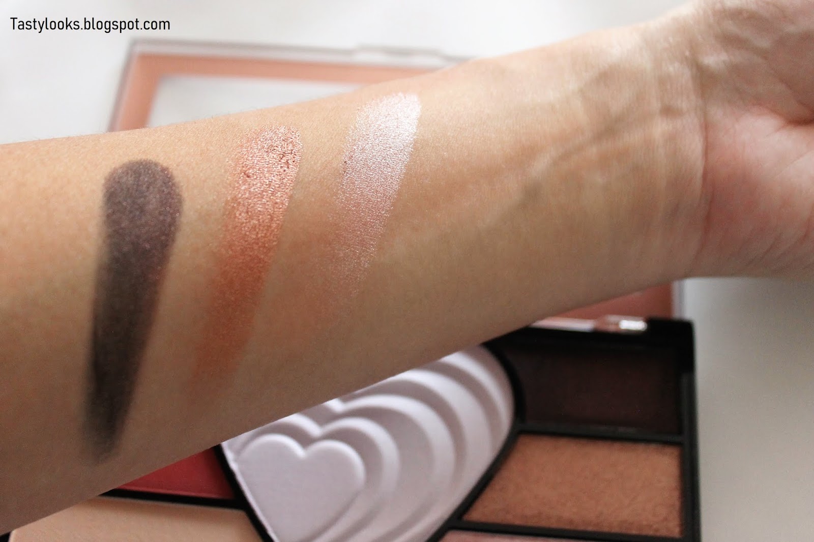 Итак, перед нами палетка, в которую входит 6 оттенков теней для глаз + посередине сердце-хайлайтер. Функциональный продукт для лица получился.
